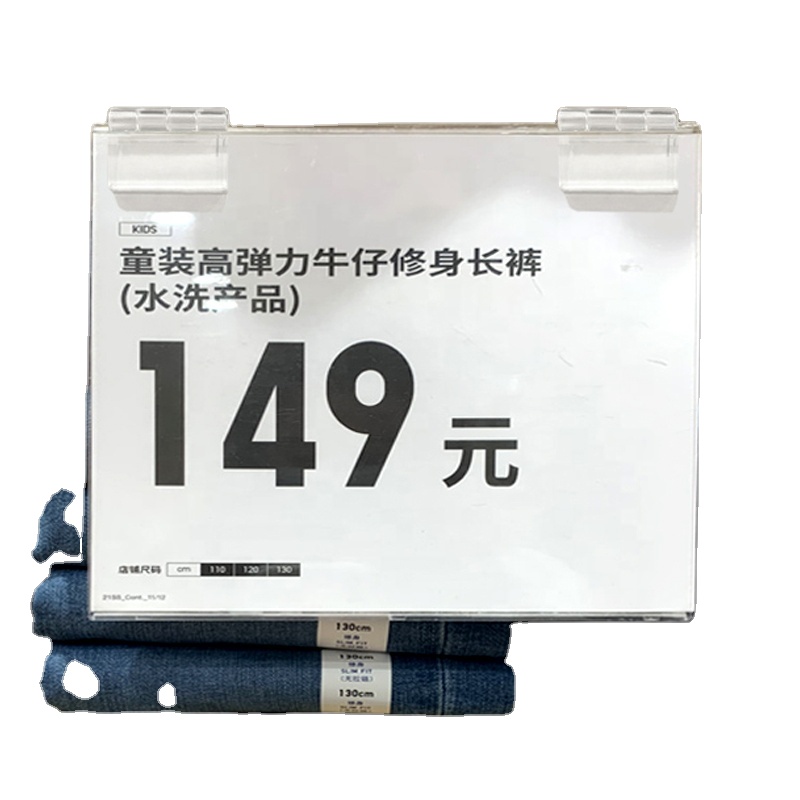 Support personnalisé vêtements publicité signe carte acrylique panneau d'affichage carte suspendu étiquette de prix
